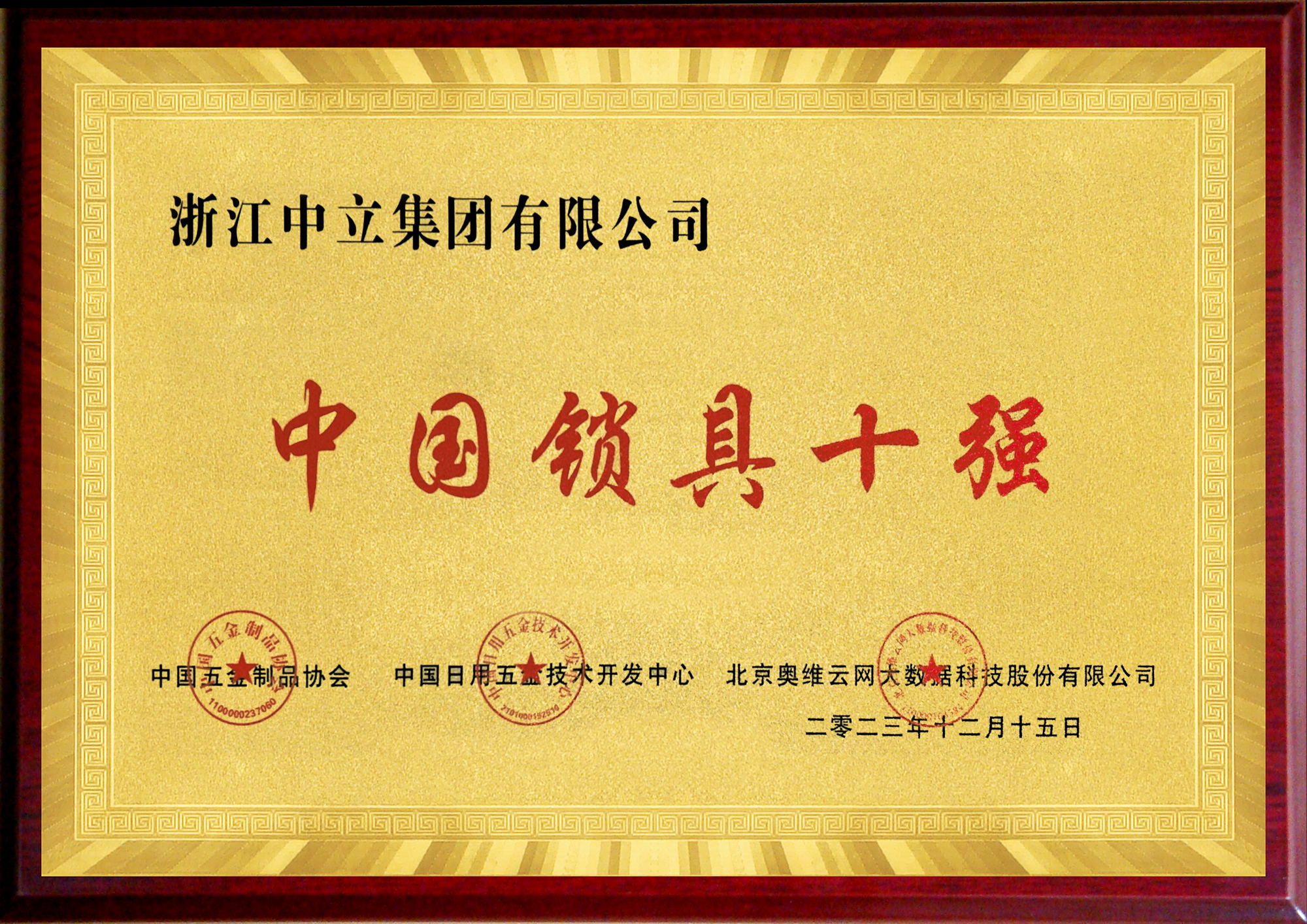 本次盛會上,中立集團還攬獲了多項重量級獎項。在中國五金制品協會領導、行業(yè)專家及市場研究權威機構、品牌代表等專業(yè)人士的共同見證下,中立集團榮獲“中國鎖具十強”、“中國智能鎖知名品牌”兩項殊榮。